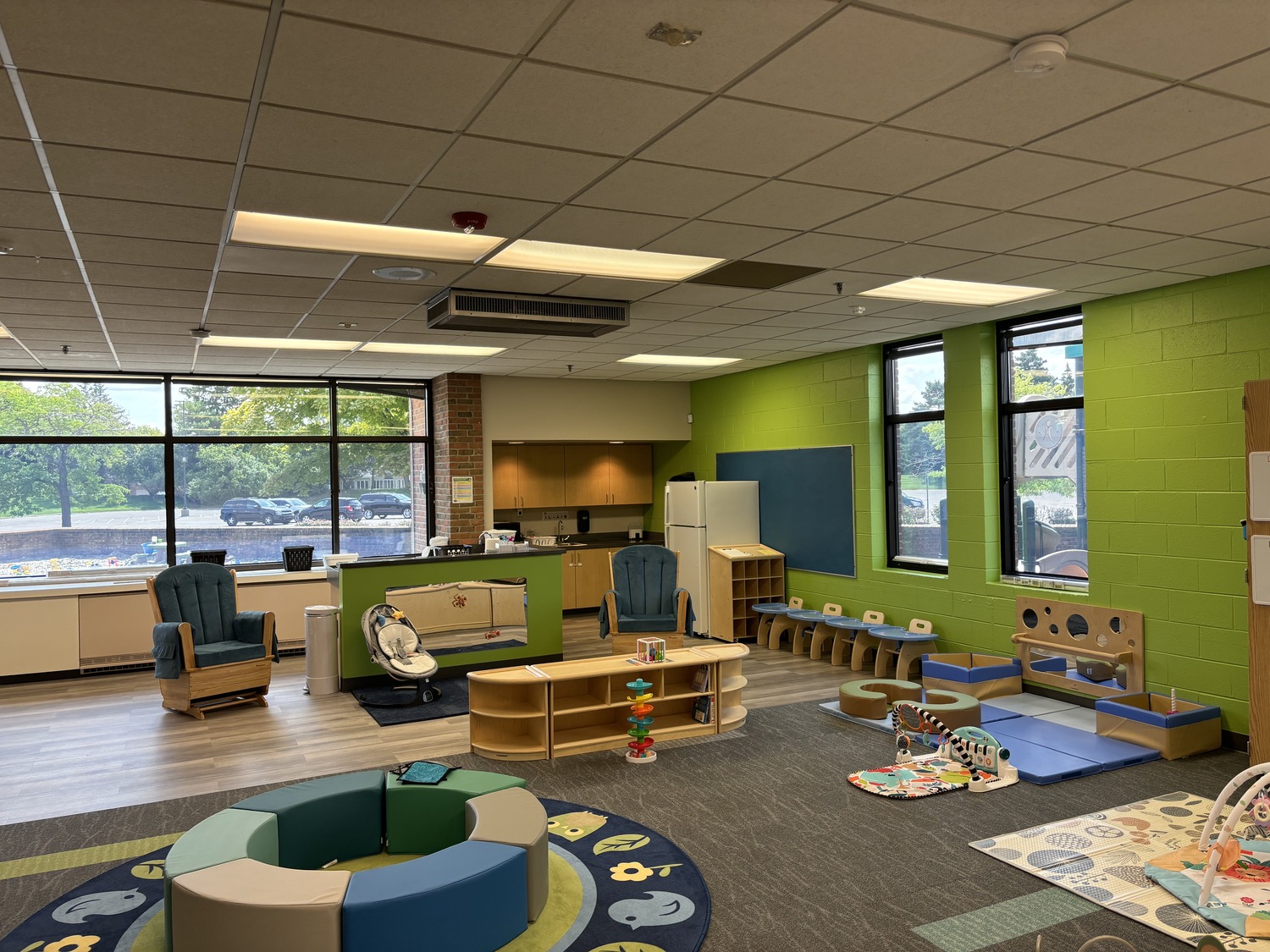 The exterior of the building matches the high-end finishes on the existing structure. The large glass clerestory around the connector is designed with extra protection features for the children, as well as a daylit environment.